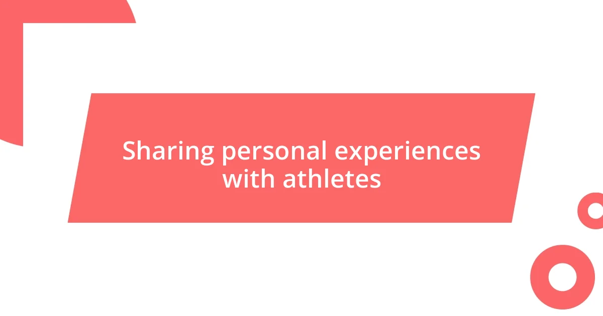 Sharing personal experiences with athletes often transcends the moment itself, weaving intricate stories that stay with us for a lifetime. I remember the first time I met an athlete I admired—after a local charity event, they took a few moments to talk with fans, signing autographs and snapping pictures. When it was my turn, I nervously recounted how their journey inspired me through my own challenges. It felt surreal to connect with someone I had only seen on television; their empathetic response solidified my admiration and reminded me that athletes are people too. Have you ever clung to a moment like that, where a brief encounter felt pivotal?