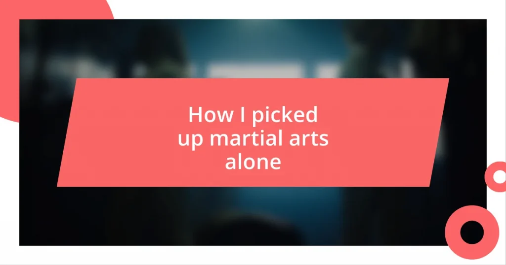 Training alone in martial arts can often feel like navigating a maze, filled with unexpected challenges. I vividly remember a time when I struggled to execute a specific kick because my technique felt off. Initially, I felt ready to give up, doubting if I was cut out for this. But I quickly realized that perseverance was key. I embraced my failures as learning opportunities and returned to the basics. Have you found that the toughest moments can sometimes lead to the biggest breakthroughs? There’s something deeply rewarding about pushing through those stubborn obstacles.