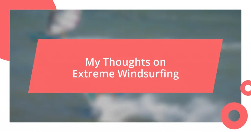 The sheer power of the wind can change everything in an instant. I remember a day when the wind picked up unexpectedly, and I was suddenly overpowered, tossed in the waves like a rag doll. Have you ever faced something that pushed you to your limits and then some? That’s exactly how it feels during extreme windsurfing; it demands skill, quick thinking, and an unwavering sense of determination.