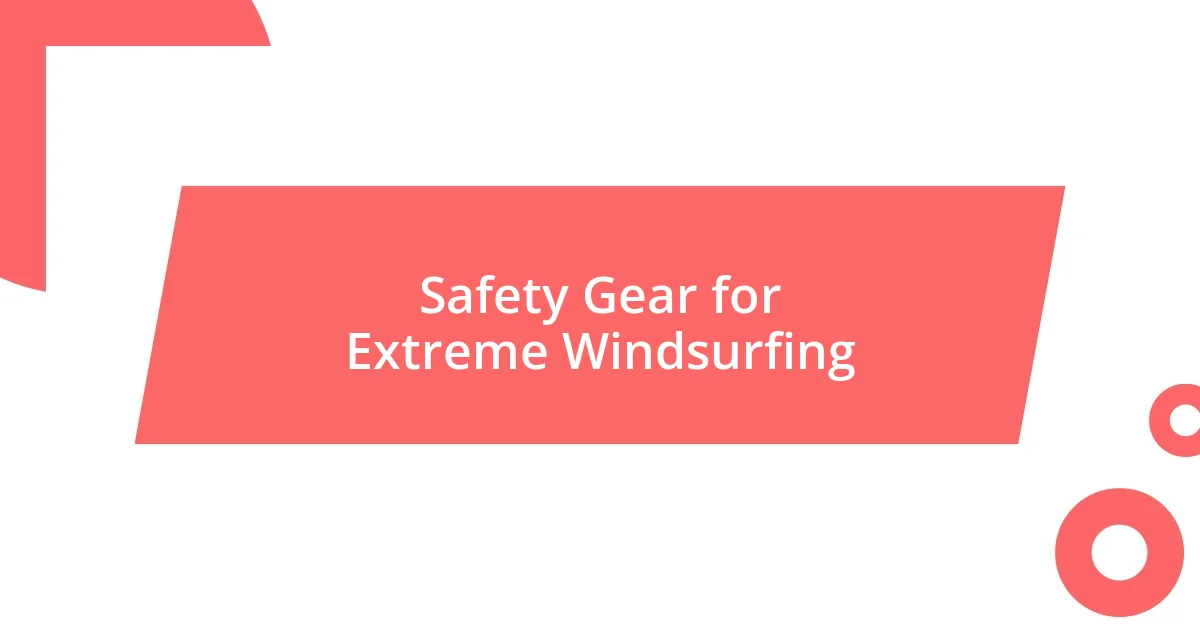When it comes to extreme windsurfing, safety gear is not just an option; it’s vital for survival and enjoyment. I remember my first serious attempt on a windy day—I underestimated how quickly conditions could change. Wearing the right gear made all the difference. It’s about protecting yourself while still feeling that exhilarating connection to the elements.