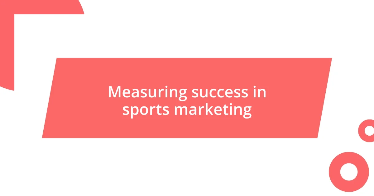Measuring success in sports marketing is all about understanding the impact of your strategies. I recall a campaign where a local team partnered with a health brand to promote wellness initiatives. Instead of focusing solely on the number of products sold, we tracked fan engagement—social media buzz, attendance at wellness events, and overall sentiment around the brand. This multifaceted approach provided a clearer picture of whether we were genuinely resonating with our audience.