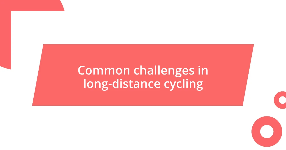 Long-distance cycling presents its fair share of challenges, and one of the most significant is dealing with physical discomfort. I vividly remember a grueling ride where I found myself grappling with saddle soreness and tight muscles. It’s a common struggle, and I’ve learned that addressing these issues through proper bike fit and padding is essential. Have you ever been on a ride where you thought, “If only I had adjusted my seat one more time”?